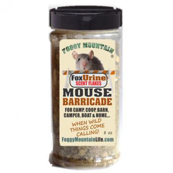 Foggy Mountain® Bobcat Urine MOUSE BARRICADE delivers a full-strength dose of pure, primal fear to mice and other small rodents. Our natural mouse deterrents are a great alternative to chemical-laden products. Since 1986 our family and our customers have seen how the scent of bobcat urine, as part of the basic communication system of the wild, warns mice, moles, voles and other small rodents that there may be a dangerous predator nearby. Foggy Mountain® Bobcat Urine MOUSE BARRICADE comes in liquid, spreadable flakes, and handy canisters for indoor use.